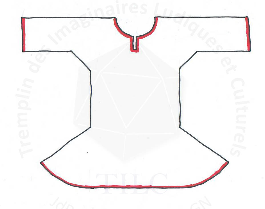 • Du lin pour la tunique, type ameublement. Si vous voulez être un peu plus confortable vous pouvez opter pour un mélange lin/coton mais dans ce cas vous n’êtes plus dans l’historique. En moyenne compter 3m x 1,5m