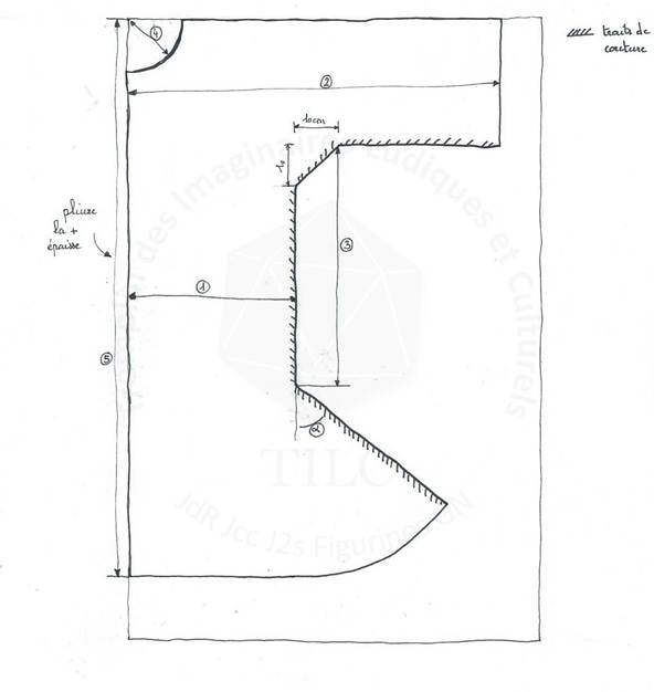 Sur le dessin les traits hachurés correspondent aux lignes de couture. Pour le tracé :
