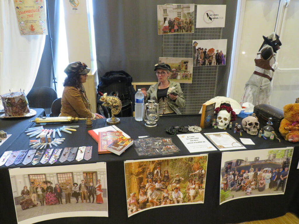 Contrairement à ce que nous avons pu entendre depuis quelques temps, il ne s’agit pas d’un stand de vapoteuses … Les Vaporistes Nantais & Cie organisent toute l’année des rencontres et des ateliers pour partager leur passion des multivers avec une affection toute particulière pour le steampunk.